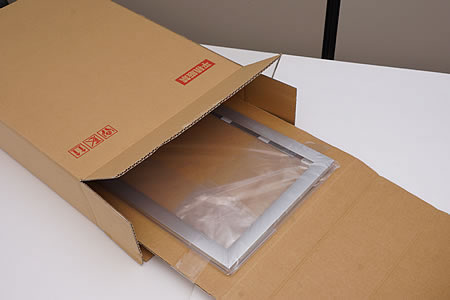手首を外側にひねるようにして、前面からフレーム四辺を開けていきます。