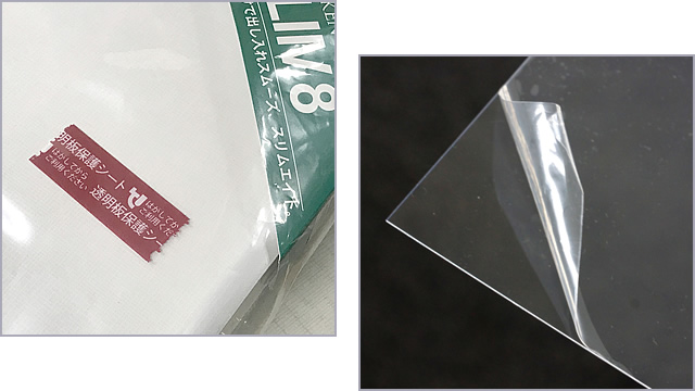 え、これで十分透明だと思ってました! エンジ色のテープが張ってある面、ここ全体が保護シートで、これをはがすとさらにクリアになるんですね!